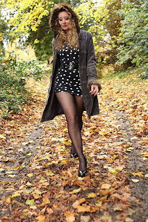 A big hello to Tony and Jennifer Ornstien, who are currently upside down in New Zealand, flown south for winter! The following shots were taken by Tony in and around their house. I like the blur and voyeuristic aspect which some of them have - they're a bit strange and interesting, glamorous and gritty! Lingerie outdoors, statues facing the other way, running in the leaves... I love them. (Dress, belt and shoes provided, lingerie and warm coat my own!)